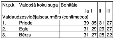 Tādēļ likumdošanā ir paredzēta alternatīva iespēja – galvenās cirtes caurmērs. Tas ļauj mežu cirst tad, kad tas sasniedz maksimālo ekonomisko vērtību, negaidot noteikto vecumu, ja valdaudzes koku vidējais caurmērs 1,3 m augstumā pārsniedz noteiktu robežvērtību (skat. tabulu).